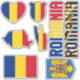 Amazing Romania Shapes National Symbols Sticker. Two country name stickers, one in the colours of the national flag and the other one covered in the Word Cloud with the words "Romania" written in the different alphabet forms and/or languages and fonts. All words are coloured with the national colours used on the flag of Romania, Beautiful heart, shield (escutcheon) and map filled with the representation of the Romania national flag. Hand sticker with the two fingers up, representing victory filled with the colours of the Romania national flag. The last two stickers are national flag of the Romania and the national Coat of Arms. This is the great set of superb stickers with most of them unique and hand drawn. All stickers are fully customisable using "Customise it!" feature. You can mix and match them as you wish. If you want multiple hearts but no shield fire away. Maybe you want only hand with the victory sign? Easy, remove everything else and make multiple copies of the hand. These grand stickers are the perfect sticky gift for any occasion. Fire away and stick them where your heart desire! © 2022 CountriesOfTheWorld