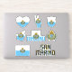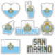 Amazing San Marino Shapes National Symbols Sticker. Two country name stickers, one in the colours of the national flag and the other one covered in the Word Cloud with the words "San Marino" written in the different alphabet forms and/or languages and fonts. All words are coloured with the national colours used on the flag of San Marino, Beautiful heart, shield (escutcheon) and map filled with the representation of the San Marino national flag. Hand sticker with the two fingers up, representing victory filled with the colours of the San Marino national flag. The last two stickers are national flag of the San Marino and the national Coat of Arms. This is the great set of superb stickers with most of them unique and hand drawn. All stickers are fully customisable using "Customise it!" feature. You can mix and match them as you wish. If you want multiple hearts but no shield fire away. Maybe you want only hand with the victory sign? Easy, remove everything else and make multiple copies of the hand. These grand stickers are the perfect sticky gift for any occasion. Fire away and stick them where your heart desire! © 2023 CountriesOfTheWorld