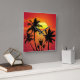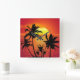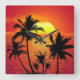 Amazing sunset with palms on tropical beach square wall clock