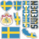 Amazing Sweden Shapes National Symbols Sticker. Two country name stickers, one in the colours of the national flag and the other one covered in the Word Cloud with the words "Sweden" written in the different alphabet forms and/or languages and fonts. All words are coloured with the national colours used on the flag of Sweden, Beautiful heart, shield (escutcheon) and map filled with the representation of the Sweden national flag. Hand sticker with the two fingers up, representing victory filled with the colours of the Sweden national flag. The last two stickers are national flag of the Sweden and the national Coat of Arms. This is the great set of superb stickers with most of them unique and hand drawn. All stickers are fully customisable using "Customise it!" feature. You can mix and match them as you wish. If you want multiple hearts but no shield fire away. Maybe you want only hand with the victory sign? Easy, remove everything else and make multiple copies of the hand. These grand stickers are the perfect sticky gift for any occasion. Fire away and stick them where your heart desire! © 2022 CountriesOfTheWorld