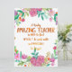 Amazing Teacher Appreciation Gift Sign Thank you Card