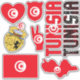 Amazing Tunisia Shapes National Symbols Sticker. Two country name stickers, one in the colours of the national flag and the other one covered in the Word Cloud with the words "Tunisia" written in the different alphabet forms and/or languages and fonts. All words are coloured with the national colours used on the flag of Tunisia, Beautiful heart, shield (escutcheon) and map filled with the representation of the Tunisia national flag. Hand sticker with the two fingers up, representing victory filled with the colours of the Tunisia national flag. The last two stickers are national flag of the Tunisia and the national Coat of Arms. This is the great set of superb stickers with most of them unique and hand drawn. All stickers are fully customisable using "Customise it!" feature. You can mix and match them as you wish. If you want multiple hearts but no shield fire away. Maybe you want only hand with the victory sign? Easy, remove everything else and make multiple copies of the hand. These grand stickers are the perfect sticky gift for any occasion. Fire away and stick them where your heart desire! © 2022 CountriesOfTheWorld