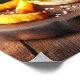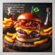 Immerse yourself in the Amazonian ambiance with this powerful Brazilian Picanha Burger. A thick picanha beef patty, grilled to savory perfection, is topped with melted catupiry cheese, sweet caramelised onions, and crispy bacon. All nestled inside a toasted brioche bun. A small Brazilian flag adds a festive touch, while a side of crispy yuca fries rests on a rustic wooden platter, completing this Brazilian culinary delight.
