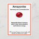 Amazonite Crystal stone meaning card featuring a crystal stone, its name meaning, its properties and an affirmation quote