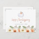 This Happy Thanksgiving postcard features a cute watercolor pumpkin with festive orange florals and a fun handwritten script font. The easy postcard backside makes it easy to add a special message to your loved ones and ship this greeting card without an envelope.