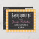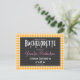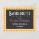 Cute bachelorette party invitation with cool Amber Orange Gingham pattern and dark grey modern chevron background.