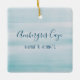 Gorgeous blue ombre watercolor highlights the latitude and longitude of Ambergris Caye, Belise. Personalise your family memories on the back.