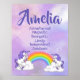 Purple Amelia Poster with rainbow, unicorns and customisable text. The adjectives start with each letter of the chosen name. You can customise the adjectives for this name or choose another name and corresponding adjectives. Or you can contact me to customise a poster with your name of choice. NOTE: when customising, the top name is written twice (once in purple and once with a lighter "shadow") to make it stand out.