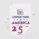 Celebrate 250 years of American independence with this customisable America 250 golf towel. Featuring bold red, white, and blue typography, layered stars, and space for your company logo or family name, it’s a timeless keepsake for 2026. The design includes “EST. 1776” and patriotic star accents, creating a commemorative look that works for both personal and corporate use. A unique way to combine your love of golf, promote your company, honour family values, and celebrate national pride. Perfect for golf outings, charity tournaments, political fundraisers, and corporate events. Also makes a standout sponsor gift, golf event sponsor favour, or donor appreciation giveaway during America 250 celebrations.A unique way to combine your love of golf while promoting your company, honouring family values, and celebrating national pride.