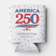 Celebrate the USA 250th anniversary with this personalized America 250 can cooler (coozie). Feature your family name and event date in a clean, patriotic design. Perfect for bulk purchase for 2026 family reunions and 4th of July party favors.