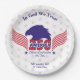 The United States will celebrate its 250th anniversary of independence on July 4, 2026, and these plates are a fantastic touch to celebrate it! You can edit the text: In God We Trust and the below text. This design is also available on a blue and red background. Available matching paper cups and napkins.