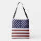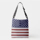 America Flag American USA Pattern Crossbody Bag, blue, red & white fireworks & American flag display set on a blue background to celebrate Independence Day. Happy 4th of July, Flip the back of our summer patriotic holiday invite over to view a matching back. Stylish Crossbody Bag for a memorial day barbecue, 4th of July cookout, labour day party, or any patriot-themed party. America Flag with Red, Red, and white stripes and white stars on a navy blue background. The stars represent the States in America. Ideal for Clothing, home decor, accessories, and gifts. Show your USA patriotism on the 4th of July or Memorial Day or at any sports event. sports event. #fleeceblanket #American #usa #patriotic #sportsfans