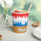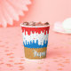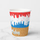 America Ice Cream Birthday Paper Cups - Personalise these birthday paper cups have a sprinkles and American ice cream cone design. Super cute ice cream in three colours of red, white and blue ice cream with matching star sprinkles all on a waffle cone at the bottom.