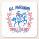 This trendy patriotic design features a retro vintage Americana line art drawing of a cowgirl riding a horse with the saying "All American Sweetheart Cowgirl Club."