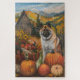 Celebrate the beauty of fall with this vibrant painting of a dog sitting beside a bountiful Thanksgiving harvest. The rich autumn colours of pumpkins, sunflowers, and rustic farmhouse scenery create a warm and inviting atmosphere, perfect for any dog lover's seasonal décor.