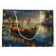 Set sail into the magic of the holiday season with this beautifully detailed illustration, showcasing a proud dog sitting in a festively decorated boat, gliding across a serene Christmas lake. The twinkling lights from nearby pine trees reflect off the water, casting a warm, festive glow that enhances the cosy ambiance. Ornaments dangle from the boat's sides, while glowing lanterns light the way, creating a scene that captures the true essence of Christmas warmth and joy. This nostalgic artwork brings a touch of holiday magic to any space, perfect for those who cherish the spirit of the season.