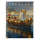Set sail into the magic of the holiday season with this beautifully detailed illustration, showcasing a proud dog sitting in a festively decorated boat, gliding across a serene Christmas lake. The twinkling lights from nearby pine trees reflect off the water, casting a warm, festive glow that enhances the cosy ambiance. Ornaments dangle from the boat's sides, while glowing lanterns light the way, creating a scene that captures the true essence of Christmas warmth and joy. This nostalgic artwork brings a touch of holiday magic to any space, perfect for those who cherish the spirit of the season.