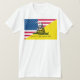 American and Gadsden Flag. Don't Tread on Me! As you can see, this design is a split design of the traditional American flag and the Gadsden flag. Pretty basic, yet a powerful image. You can find this design on a wide range of products to choose from.