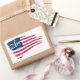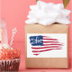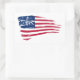 Stylised image of the American flag with the atheist atom symbol in the blue field where the stars would be.