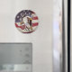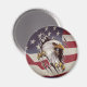 Custom magnet featuring bald eagle breaking through to freedom with an American flag background.