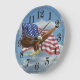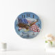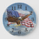 10.75” round acrylic wall clock with an image of a waving American flag and a bald eagle in flight against a cloudy blue sky. See the entire Patriotic 40s Clock collection in the DECOR | Clocks section.