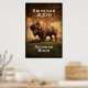 A painting of an American bison standing on a grassy field with a vintage map in the background.