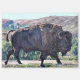An imposing American bison, with its rugged coat and powerful stance, walking amidst scenic grassy plains. The surrounding environment enhances the wild beauty of this iconic North American animal.
