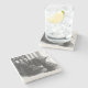 The coasters are gorgeous, a quality feel and heavy weight. They look like a precious archeological find. A rustic stone juxtaposed with a modern floral black and white print. I like the way the print goes slightly imperfect on the cut stone edges giving them a kind-of natural beauty.