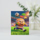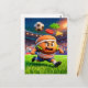 A powerful burger character in a U.S. soccer jersey charges forward with a soccer ball on a bright stadium field. Floating toppings add motion and energy, while expressive eyes and soft 3D shading enhance the character’s personality. Detailed grass and stadium lights create a dynamic soccer atmosphere.
