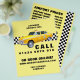 American Cartoon Style Yellow Taxi with Price List Advertising Flyer by The Business Card Store.