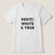 This T-shirt features a bold and patriotic design with the phrase “RED WHITE & TRUE” in capitalised letters. Above the text, there is an image of the United States flag in grayscale. The design evokes a sense of national pride and is perfect for those who want to showcase their love for the USA. Made from high-quality, comfortable fabric, this T-shirt is ideal for casual wear and makes a strong statement.