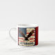 Show your gratitude and pride with every sip. This striking specialty mug features a powerful, vintage-inspired illustration of a majestic Bald Eagle with its wings spread wide against the backdrop of the American Flag.