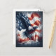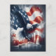 An American eagle soars above a cityscape, with the American flag billowing behind it. The image is rendered in a stylised, artistic fashion.