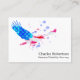 * White Background Colourful Patriotic Bald Eagle in Flight Business Card - This powerful yet simple elegant professional artistic design is of An Abstract Red White and Blue Watercolor American Bald Eagle Made up from a watercolor design of the USA UNITES STATES of America Flag sprinkled with some watercolor blue and red paint around it to give it some interest and texture. One can see the stars and stripes in the America Bald Eagle." -