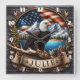 American Eagle With Scenic Mountains and Flag Square Wall Clock