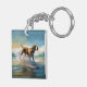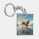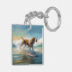 American Engligh Foxhound Beach Surfing Painting Key Ring