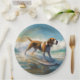 American Engligh Foxhound Beach Surfing Painting Paper Plate