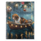 Set sail into the magic of the holiday season with this beautifully detailed illustration, showcasing a proud dog sitting in a festively decorated boat, gliding across a serene Christmas lake. The twinkling lights from nearby pine trees reflect off the water, casting a warm, festive glow that enhances the cosy ambiance. Ornaments dangle from the boat's sides, while glowing lanterns light the way, creating a scene that captures the true essence of Christmas warmth and joy. This nostalgic artwork brings a touch of holiday magic to any space, perfect for those who cherish the spirit of the season.