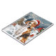 his festive design captures the joyful spirit of the holiday season, featuring an adorable pup wearing a Santa hat. The cat is nestled in a winter wonderland, complete with a snowman, a decorated Christmas tree, and beautifully wrapped presents. Snowflakes gently fall, adding a magical touch to the scene, while the vibrant colours of the holiday decorations create a warm and cheerful atmosphere.