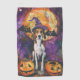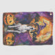 Embrace the Halloween spirit with this enchanting design featuring a cute dog in a witch hat surrounded by carved pumpkins. Perfect for adding a touch of spooky charm to your festive celebrations.