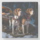American English Foxhound Snowy Sleigh Christmas Stone Coaster
