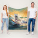 American Eskimo Beach Surfing Painting Fleece Blanket