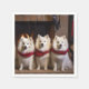An enchanting scene captures the essence of cosiness and holiday spirit as furry companions adorned in Santa Claus hats gather around a crackling fireplace. The warmth emanating from the hearth creates a snug atmosphere for these adorable canines, while festive stockings hang in the background, enhancing the merry ambiance. The charming illustration portrays a timeless image of companionship and festive joy, perfect for celebrating the holiday season with a touch of canine charm.