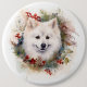 American Eskimo Christmas Wreath Festive Pup 6 Cm Round Badge