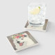 The coasters are gorgeous, a quality feel and heavy weight. They look like a precious archeological find. A rustic stone juxtaposed with a modern floral black and white print. I like the way the print goes slightly imperfect on the cut stone edges giving them a kind-of natural beauty.
