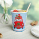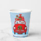 American Eskimo Dog In Car With Santa Clause Paper Cups