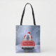 American Eskimo Dog in Snow sitting in Christmas Tote Bag