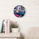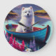 American Eskimo Dog on Paddle: A Scenic Adventure Large Clock