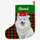 American Eskimo Dog Plaid with Name Large Christmas Stocking