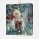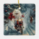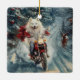 American Eskimo Dog Riding Motorcycle Christmas Ceramic Ornament